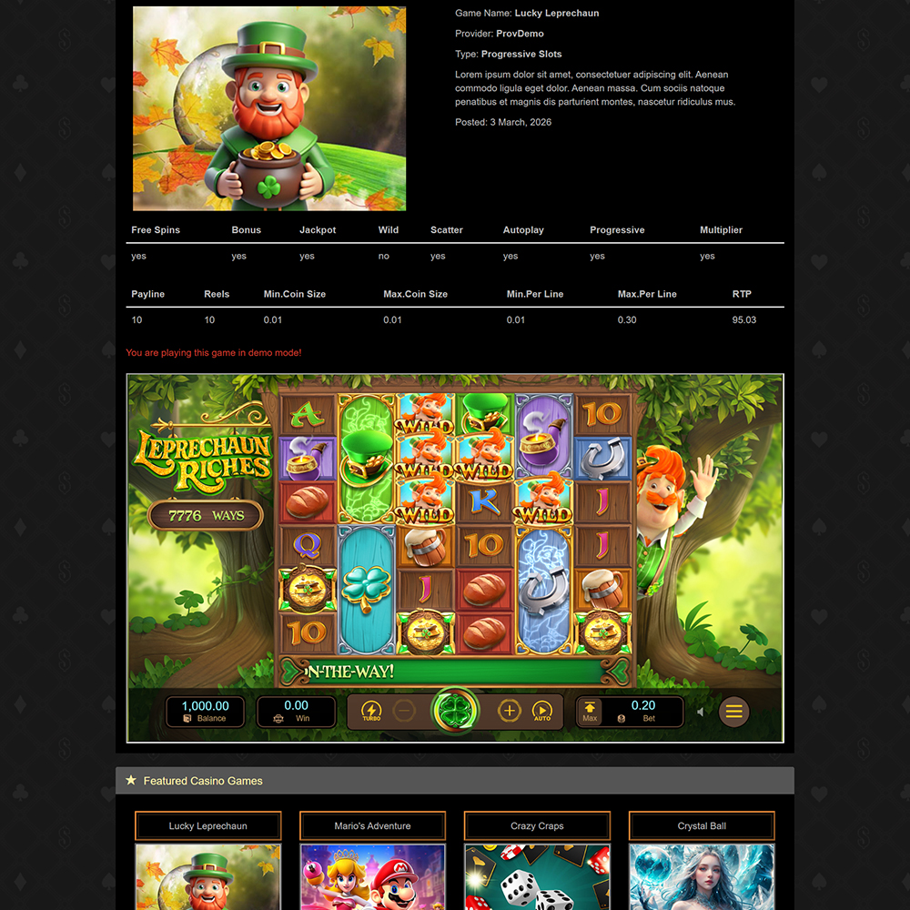 Платформата съчетава визуално ангажиращ интерфейс с надеждно, напълно редактируемо администраторско табло, което я прави идеална за партньори, казино маркетолози и агрегатори на демо игри.